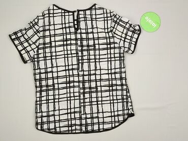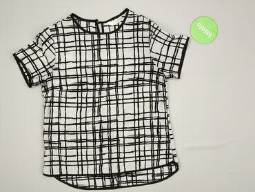 Bluzka damska z krótkim rękawem - Kolor: czarny z białym, nieregularnym wzorem kratki - Krój: prosty, lekko zaokrąglony dół z przodu i z tyłu - Dekolt: okrągły, wykończony lamówką - Zapięcie: z ty...Stan:
