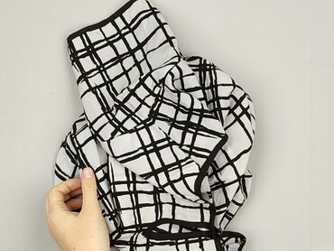 Bluzka damska z kołnierzykiem, wzór geometryczny - Kolor: biel z czarnym nadrukiem w regularny, kafelkowy wzór - Fason: luźny, koszulowy; zapinana z przodu na guziki - Rękawy: 3/4, lekko rozszerza...