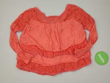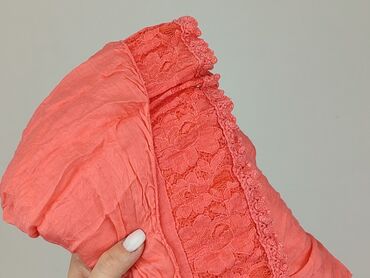 Koronkowa bluzka damska w kolorze koralowym - Model: luźna, przewiewna bluzka z krótkim rękawem - Dekolt: półokrągły z dekoracyjną, ażurową koronką wokół kołnierza - Tkanina: ażurowa koronka na ca...Stan: