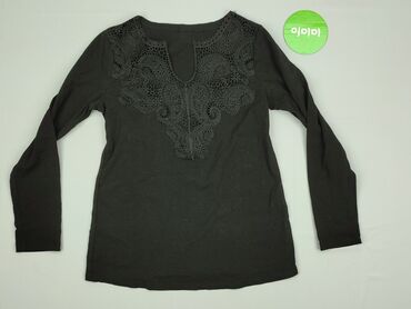 Bluzka damska z długim rękawem, czarna. - Fason: prosty, z dekoltem w kształcie litery V. - Ozdoba: koronkowa wstawka na przodzie układająca się w głębokie V, delikatny, kwiatowy wzór. - Rękaw: dł...