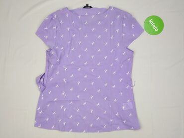 Bluzka damska Papaya, rozmiar 20 (etykieta). - Kolor: lawendowy/fioletowy w kwiatowy print (białe storczyki z zielono‑czerwonymi akcentami). - Materiał: lekki, półprzezroczysty, delikatnie kreszow...