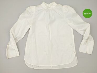 Koszula damska z długim rękawem, biała, 100% bawełna. - Rozmiar z metki: EU 42 / US 12 (CN 170/96A, MX 12) - Fason: przedłużany dół (zaokrąglony), zapięcie na guziki z przodu - Kołnierz: stójka - ...Stan: