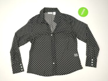 Damska koszula w grochy - Kolor: czarny w białe kropki - Krój: zapinana na guziki, kołnierzyk klasyczny, lekko wydłużony dół; rękawy z mankietami zapinanymi na guzik - Rozmiar z metki: L/XL - Mate...
