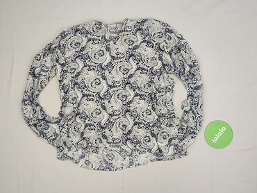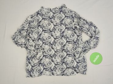 Bluzka damska TXM Fashion w rozmiarze 38, z dekoltem w kształcie litery V, w kolorze biało-niebieskim z abstrakcyjnym wzorem. Długie rękawy zakończone są gumką, co nadaje im efektowne bufiaste wyko...