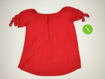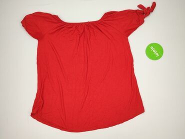 Czerwona bluzka damska z krótkim rękawem - Fason: luźny, z elastyczną gumką w dekolcie i u dołu (można nosić prosto lub lekko opuszczoną na ramiona) - Dekolt: szeroki, marszczony - Rękawy: krótkie...