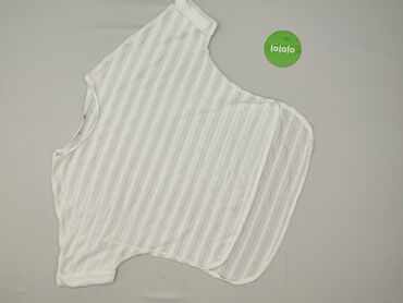 Ażurowa bluzka z krótkim rękawem - Kolor: biały - Krój: prosty, swobodny; okrągły dekolt - Rękawy: krótkie - Materiał: dzianina ażurowa z pionowymi, naprzemiennymi pasami (gęstsze i bardziej prześ...