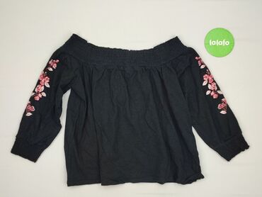 Bluzka Sinsay, rozmiar L - Krój: kobiecy top z dekoltem w kształcie litery V - Rękawy: długie, bufiasto rozszerzane - Wzór: kwiatowy na czarnym tle, odcienie niebieskiego i bieli - Materiał: 100% ...
