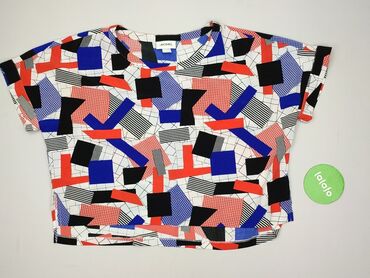 Bluzka damska MONKI, rozmiar L - Fason: koszulowa bluzka z kołnierzykiem, długi rękaw, dół lekko zaokrąglony, zapięcie na guziki z przodu - Wzór: czarne tło w abstrakcyjne, nieregularne kropki/“pl...