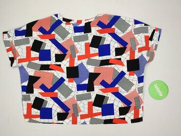 Bluzka MONKI – rozmiar XL - Fason: luźna, nietoperz/oversize z szerokimi rękawami, asymetryczna linia ramion. - Wzór: abstrakcyjny, geometryczne liście w odcieniach czerni, zieleni i pudrowego róż...