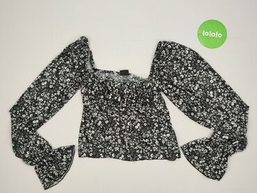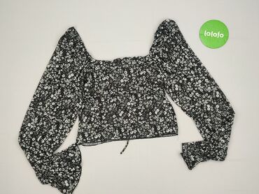 Bluzka damska Gina Tricot - Kolor: czarny w drobny, biały kwiatowy wzór - Rozmiar z metki: 40 - Fason: luźny, prosty krój z okrągłym dekoltem - Rękawy: długie, efektowne z falbanami/marszczeniami ...