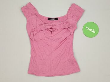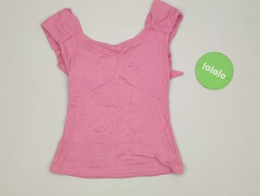 Bladoróżowa bluzka damska TALLY WEiJL - Rozmiar: XS - Krój: hiszpanka/off-shoulder – szeroki dekolt, który można nosić opuszczony na ramiona - Rękawy: krótkie, szerokie, z marszczeniami przy ramio...