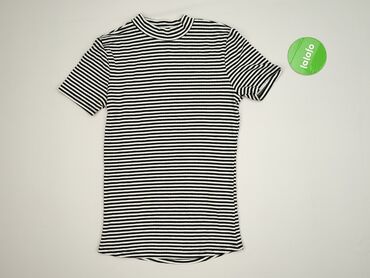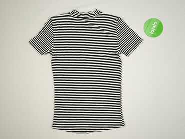 Biała, prążkowana bluzka damska z krótkim rękawem. - Marka: Sisstay - Rozmiar z metki: XS - Krój: dopasowany, elastyczny materiał podkreślający sylwetkę - Dekolt: półgolf/stójka - Rękaw: krótki - ...
