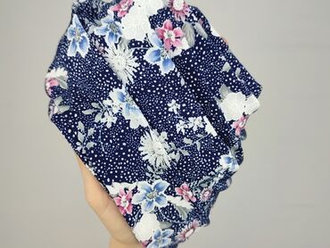 Bluzka damska z krótkim rękawem, w kwiatowy wzór - Krój: prosta bluzka z okrągłym dekoltem, krótkie rękawy typu kimono - Wzór: duże, kolorowe kwiaty (róże, peonie) na granatowo-niebieskim tle - Ma...