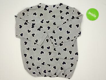 Biała bluzka damska w drobne serduszka - Rozmiar: L (na metce) - Krój: luźny, z krótkim rękawem - Dekolt: stójka z małym wycięciem V z przodu - Zapięcie: suwak z tyłu - Dół: ściągacz gumowy, nadaje...