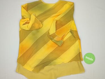 Żółta bluzka damska z lekkiego, zwiewnego materiału - Krój: luźny, asymetryczny dół z nakładającymi się panelami z przodu - Dekolt: głęboki w kształcie litery V - Rękawy: 3/4, lekko rozszerzane - ...