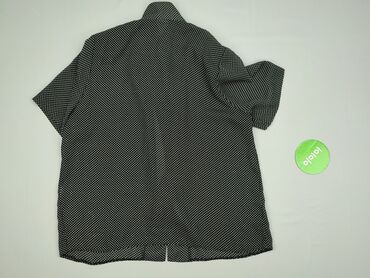 Bluzka damska w grochy - Kolor: czarny w białe kropki - Krój: luźny, lekko wydłużony tył, krótkie rękawy - Dekolt: zaokrąglony z krótkim rozcięciem z przodu - Detale: dwie dekoracyjne, metaliczne ...