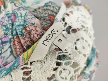Bluzka damska bez rękawów Next, rozmiar 10. - Kwiatowy wzór w pastelowych kolorach: żółty, róż, niebieski i ecru - Góra z półprzezroczystej siateczki w kolorze ecru z koronkową lamówką - Ozdobne a...