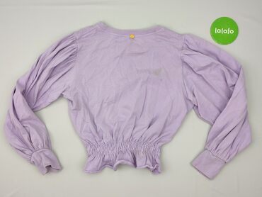 Bluzka damska w kolorze lawendowym - Krój: luźny, oversize; lekko opuszczona linia ramion - Dekolt: w kształcie litery V z delikatną zakładką z przodu - Rękawy: krótkie, szerokie - Dół: zaokrąglon...
