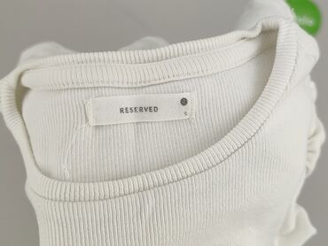 Bluzka damska Reserved - Model: gładka, krótki rękaw - Kolor: biały/łamana biel - Dekolt: okrągły, z delikatnymi zaszewkami z przodu - Zapięcie: małe rozcięcie i guziczek z tyłu pod szyją - Dół: l...
