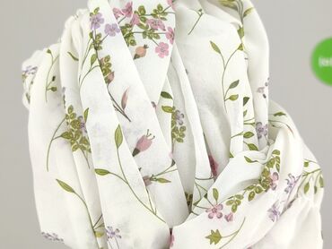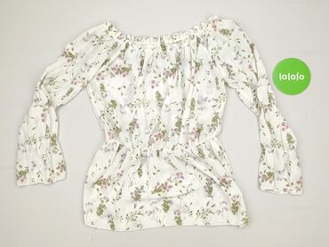 Bluzka damska z lekkiej, półprzezroczystej tkaniny w kolorze białym z kwiatowym nadrukiem w odcieniach różu, zieleni i czerni na rękawach oraz dolnym wykończeniu. - Krój luźny, swobodny - Dekolt ...