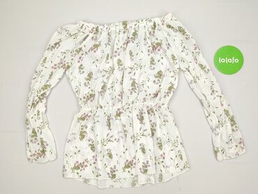 Bluzka hiszpanka w kwiaty - Kolor: pudrowy róż z nadrukiem kwiatowym w odcieniach bordo, bieli, żółci i zieleni - Krój: odkrywające ramiona (off-shoulder) z elastyczną gumką wokół dekoltu; talia p...Stan: