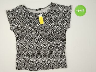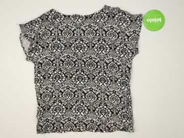 Bluzka damska TOM & ROSE, rozmiar M. - Fason: luźny T‑shirt z krótkim rękawem typu kimono (lekko opadające ramiona) - Kolor/wzór: czarno‑biały, gęsty kwiatowy ornament na całej powierzchni - Dekol...