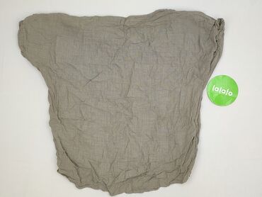 Top damski bez rękawów – luźny, zwiewny krój. - Kolor: jasnoszary/melanż. - Tkanina: lekka, cienka, przypominająca len lub mieszankę lnianą; miękka, oddychająca. - Fason: szeroki, oversize z mar...