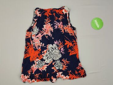 Bluzka damska bez rękawów House, rozmiar S. - Kolor: granatowy - Wzór: drobne białe kropki połączone z kwiatowym motywem w odcieniach różu, zieleni i niebieskiego - Fason: lekko zwiewny, zaokrąglo...