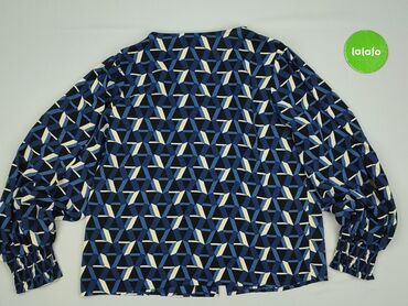Damska bluzka z długim rękawem, granatowa - Krój: luźny, z subtelnymi zakładkami przy dekolcie - Dekolt: półokrągły - Rękawy: długie, zakończone gumką (delikatne bufki) - Dół: lekko zaokrąglony, z...