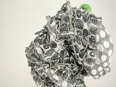 Bluzka damska bez rękawów w drobne kropki. - Kolor: jasnoszary z białym groszkiem - Krój: prosty, lekko luźny - Dekolt: łezka z wiązaniem pod szyją - Rękawy: falbaniaste wykończenia na ramionach (...