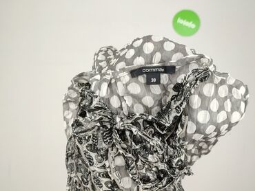 Bluzka damska Comma, rozmiar 38 (EU) - Kolor: jasny błękit z białym geometrycznym wzorem (rozetki) - Krój: lekko taliowany, zaokrąglony dół - Rękaw: krótki, z delikatną gumką przy krawędzi - Dekol...