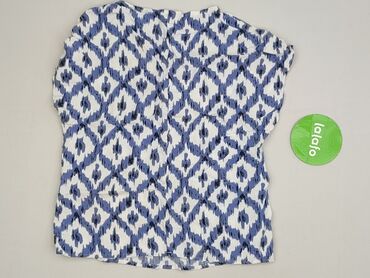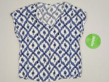 Bluzka damska Jacqueline de Yong - Rozmiar: 36 - Fason: luźny, z krótkim rękawem typu kimono - Dekolt: w kształcie litery V z krótką listwą - Wzór: etniczne/geometryczne pasy w odcieniach granatu ...