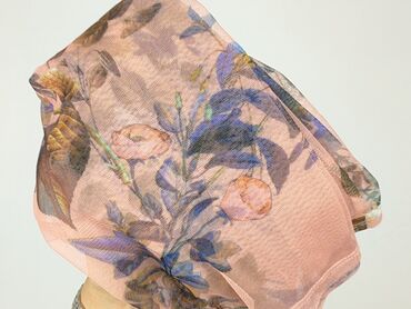 - Wzór: kwiatowy nadruk w odcieniach niebieskiego, zieleni i fioletu na brzoskwiniowym tle