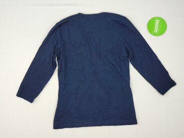 Damska bluzka z długim rękawem, granatowa - Krój: luźny, z subtelnymi zakładkami przy dekolcie - Dekolt: półokrągły - Rękawy: długie, zakończone gumką (delikatne bufki) - Dół: lekko zaokrąglony, z...