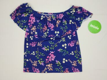 Bluzka hiszpanka MOHITO – rozmiar L - Kolor: intensywny kobaltowy/niebieski - Fason: hiszpanka z szeroką falbaną odkrywającą ramiona - Materiał: elastyczna tkanina z marszczeniem (smocking) w częś...