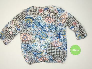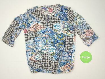 Bluzka damska z lekkiej, zwiewnej tkaniny w orientalny/patchworkowy wzór paisley w odcieniach niebieskiego, granatu, bieli i czerni. - Krój: luźny, delikatnie zaokrąglony dół - Dekolt: w kształcie...Stan: