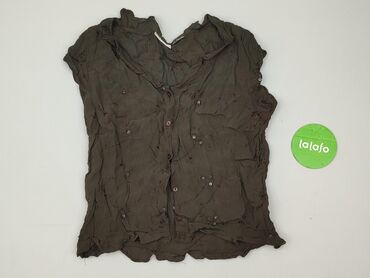 Brązowa koronkowa bluzka damska z krótkim rękawem - Styl: romantyczny/boho, koronkowy, półprzezroczysty - Fason: dopasowany, z dekoltem w kształcie łódki przechodzącym w delikatne „V” - Detale: pi...
