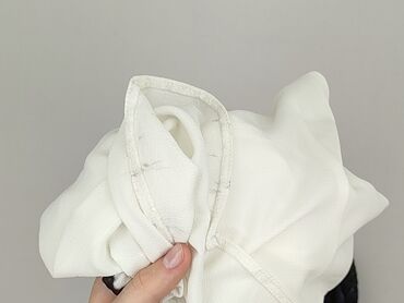 Biała, zwiewna bluzka damska z długim rękawem. - Materiał: lekka, półprzezroczysta tkanina o delikatnym, miękkim chwycie. - Krój: luźny, lekko wydłużony tył, zaokrąglony dół. - Dekolt: okrągły z pi...Stan: