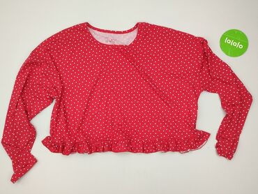 Bluzka damska Primark - Rozmiar z metki: S (UK/IRL 10/12, USA 6/8, EUR 38/40, IT 42/44) - Kolor: czerwony w różowe serca - Krój: luźny, lekko krótszy (crop) z falbanką przy dole; długie rękawy, ok...