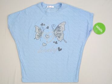 Bluzka damska Katalinski - Kolor: jasny błękit - Materiał: 100% bawełna (metka producenta) - Krój: luźny, z obniżoną linią rękawka/skrzydełkowe krótkie rękawy - Dekolt: okrągły - Przód: złoty, poł...Stan:
