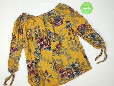 Bluzka F&F z motywem kwiatowym - Kolor: jasny żółty/beż z zielono‑białymi i żółtymi kwiatami oraz delikatnym paisley - Krój: luźna, z dekoltem typu hiszpanka na gumce i troczek do regulacji; bufia...