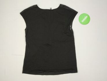 Czarna bluzka damska BODYFLIRT - Rozmiar: M (EU 40/42, GB/US M, FR 42/44, IT 46/48) - Krój: lekko rozszerzana ku dołowi - Rękaw: krótki - Dekolt: stójka/golfik - Ozdoby: szeroki pas koronkowo‑haft...
