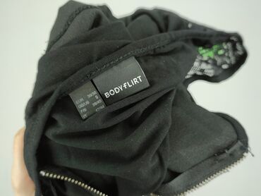 Bluzka damska BODYFLIRT, rozmiar XS (EU 32/34). - Kolor: melanż szary z czarną górą - Dekolt: okrągły - Rękaw: krótki/dolman (lekko opadające ramiona) - Ozdoba: szeroki pas czarnej, kwiatowej koro...