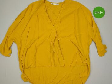 Bluzka damska Zara - Kolor: intensywny żółty - Krój: luźny, oversize - Dekolt: w kształcie litery V (podwójna warstwa przy dekolcie) - Rękawy: 3/4, szerokie - Dół: lekko wydłużony tył, szeroka lis...Stan: