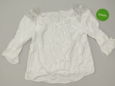 Bluzka damska w kolorze białym z koronkowymi wstawkami na rękawach. - Fason: luźny, z obniżoną linią ramion - Dekolt: okrągły - Rękaw: 3/4; górna część rękawów z półtransparentnej siateczki z kwia...