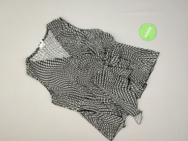 Bluzka damska H&M - Fason: luźny, z paskiem do przewiązania w talii (szlufki po bokach), rękaw 3/4 lekko rozszerzany - Wzór: nieregularny, czarno‑biały print (abstrakcyjne kropki/maziaje) - Dekolt...
