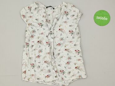 Bluzka damska Mohito Basic - Model: koszula/bluzka z długim rękawem - Rozmiar z metki: 34 - Kolor: biały w delikatny, kwiatowy nadruk w odcieniach zieleni i fioletu - Fason: lekko zwiewny, z marsz...