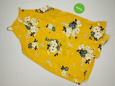 Żółta bluzka/top damski na ramiączkach - Krój: luźny, trapezowy - Dekolt: typu halter ze ściąganym, marszczonym kołnierzem - Zapięcie/wiązanie: sznureczki przy szyi do regulacji obwodu - Długość: ...