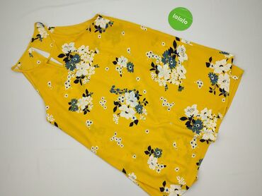 Bluzka bez rękawów – kolor intensywnie żółty/musztardowy. - Krój luźny, lekko rozszerzany. - Dekolt okrągły. - Góra z przodu wykończona elastycznym marszczeniem/szmokowaniem, które dodaje faktury ...