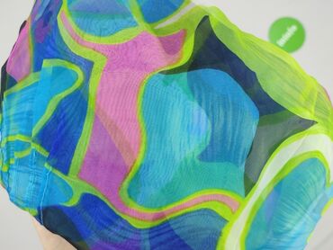 Rękaw 3/4Zwiewna bluzka damska z półprzezroczystego szyfonu w intensywny, kwiecisto-abstrakcyjny print (odcienie zieleni, turkusu, niebieskiego, fioletu, różu i czerni).